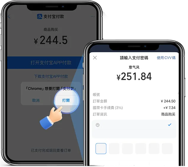點擊【打開支付寶 App 付款】,系統將自動跳轉至支付寶畫面,確認金額後完成支付流程。