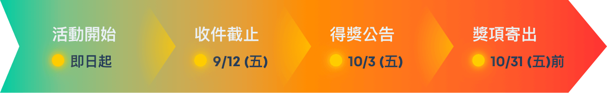 - 所有獎項/獎金將於 2025 / 10 / 31 (五) 前以掛號寄出,若因無人簽收而遭退件,將視同放棄領獎資格。