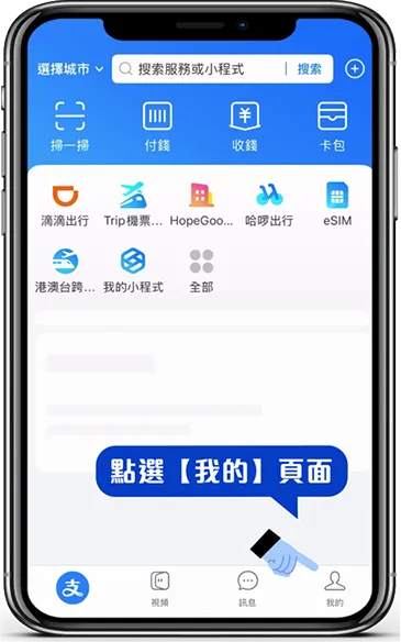 步驟 3:於「支付寶」主畫面 點擊【我的】