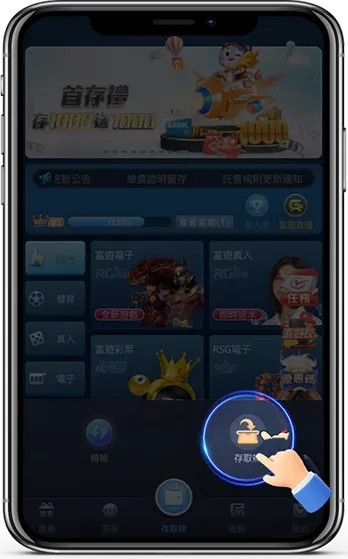 登入後,從底部導覽列中點選【存取款】圖示,進入儲值與提款操作頁面。